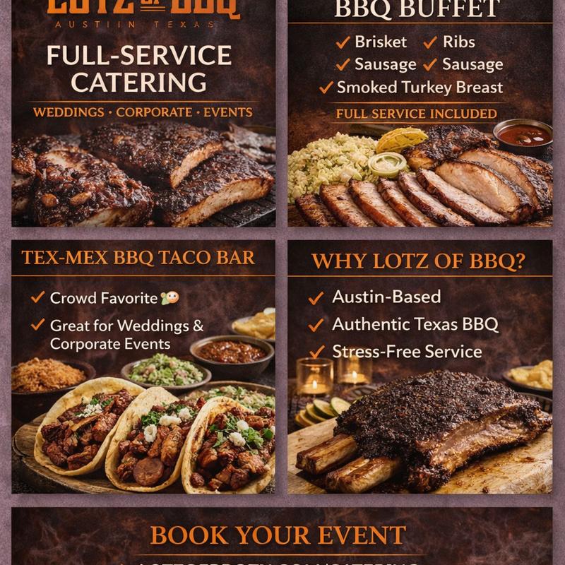 Bring the bold, smoky flavor of Lotz of BBQ to your next event. We cater everything from backyard parties to corporate gatherings - no crowd too big, no appetite too small.